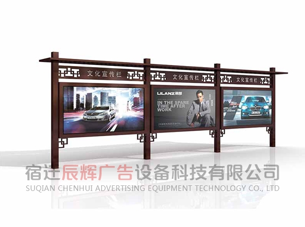 宣傳欄是一種VI應(yīng)用,是組織或企業(yè)單位等進行自我宣傳的有效手段,常被應(yīng)用于街道,工廠等公共場所;一般采用不銹鋼為框架,鋼化玻璃或者耐力板為面板,鋁合金為頂棚,面板可以打開更換宣傳畫面。現(xiàn)如今,宣傳欄廣泛應(yīng)用于學(xué)校、小區(qū)、會議館、展廳等各個場地。